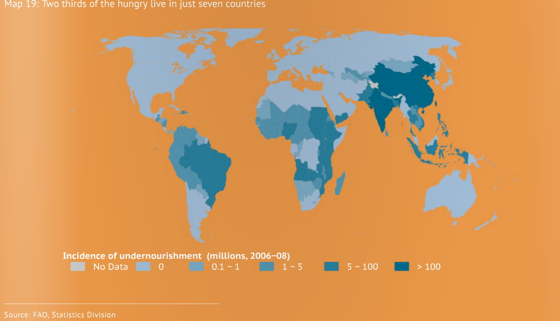 Bugün, yaklaşık bir milyar insan açlık ve yetersiz beslenmeden muzdarip olduğu bilinmektedir. Vietnam, Endonezya, Meksika, Maharashtra, Hindistan gibi ülkelerin yanı sıra Afrika'da Burkina Faso, Etiyopya, Gana, Kenya, Mozambik, Ruanda ve Tanzanya bulunuyor açlık tehlikesi geçiren ülkelerdendir.